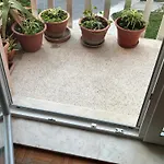 Här har rummen utsikt över trädgården. Det finns bidé och dusch i ett badrum.